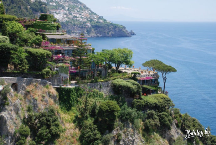 На побережье Амалфи, в городе Позитано будто прямо в скале воздвигнут первоклассный отель. Безусловно, отдыхать там одно удовольствие: укомплектованные номера, роскошный интерьер, прекрасное месторасположение. Если вы боитесь высоты, вам стоит задуматься ехать ли сюда. Так как столики расположены будто над обрывом. Но безусловно, ужинать можно и в роскошном ресторане в здании отеля. Ресторан удостоен звезды Мишлен, что гарантирует качество. И именно "качество" ощущается здесь во всем: в каждом элементе интерьера и в каждом ингредиенте блюд.