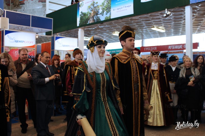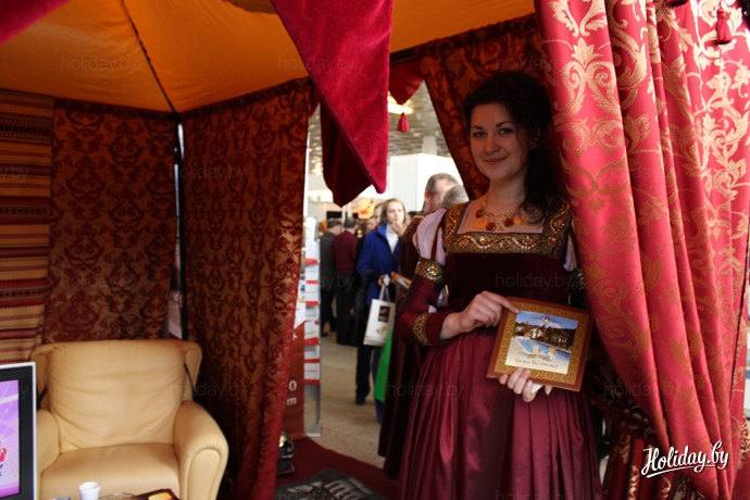 Выставку даже посетили шляхетные особы в стародавних костюмах. На этот раз на выставке свой стенд демонстрирует Министерство культуры РБ, а вместе с ним свои услуги предлагают и различные музеи Беларуси.