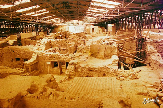 уничтожен мощным извержением вулкана на Санторини примерно в XVII веке до нашей эры.