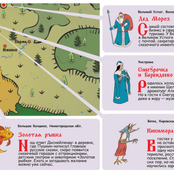 Самое интересное, что города не сами решают, что именно у них жил Илья Муромец, например. К работе над картой привлечены региональные краеведы и исследователи мифологии, т.е. нужны веские доказательства того, что персонаж из сказок здесь обитал.