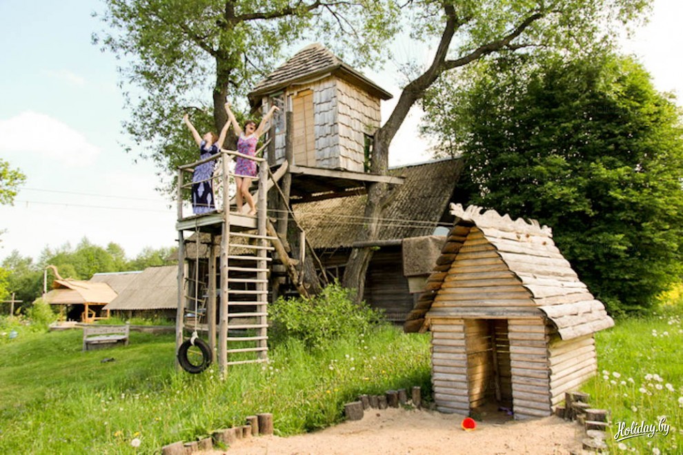 Никакого цемента, асфальта – всё вокруг только из дерева и немного из камня. Владимир Громов сам увлекается изделиями из дерева и почти все здесь сделано своими руками. Очень запомнился домик на дереве, - о таком каждый мечтал в детстве 100%. Скоро в этом домике можно будет даже жить :)