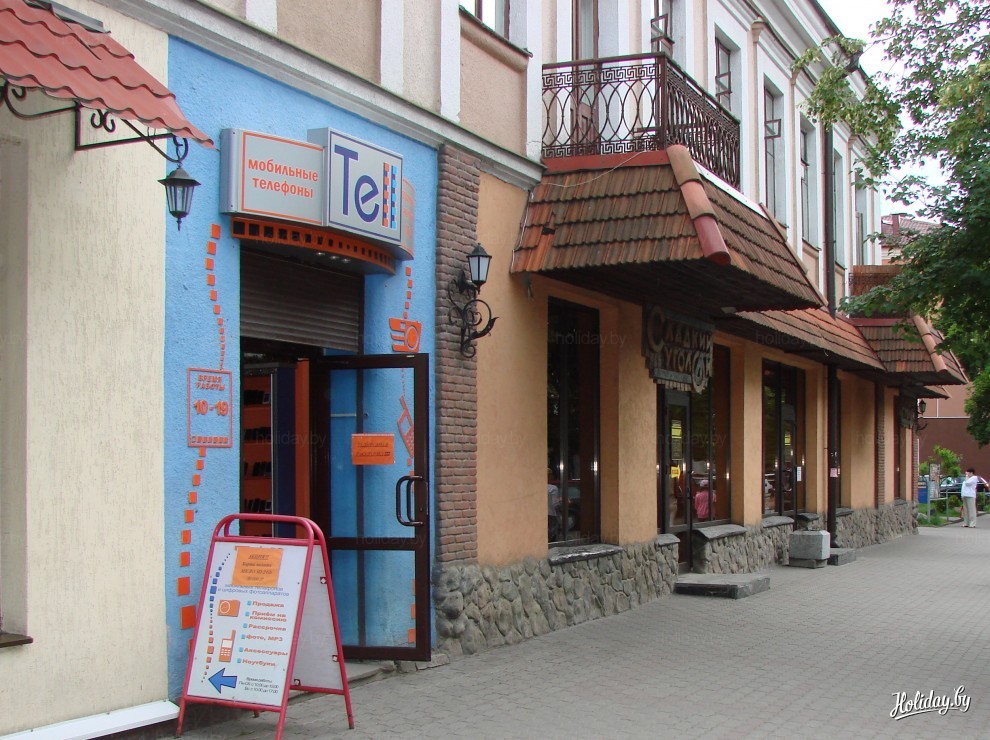 Каким-то удивительным образом даже ярко-голубая ультрасовременная вывеска о продаже мобильных телефонов и то вписывается в общую архитектуру города.