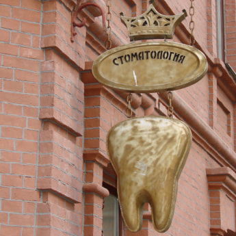 Несмотря на такую устрашающую вывеску, мне было бы приятнее лечить зубы в такой стоматологии, чем в стандартном панельном здании с белыми стеклопакетами.