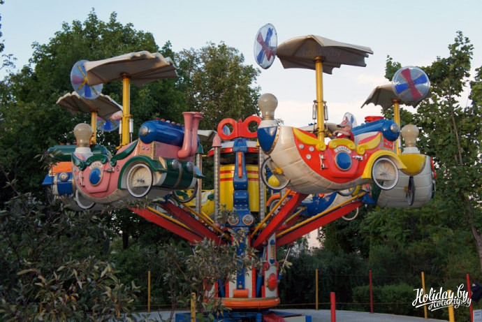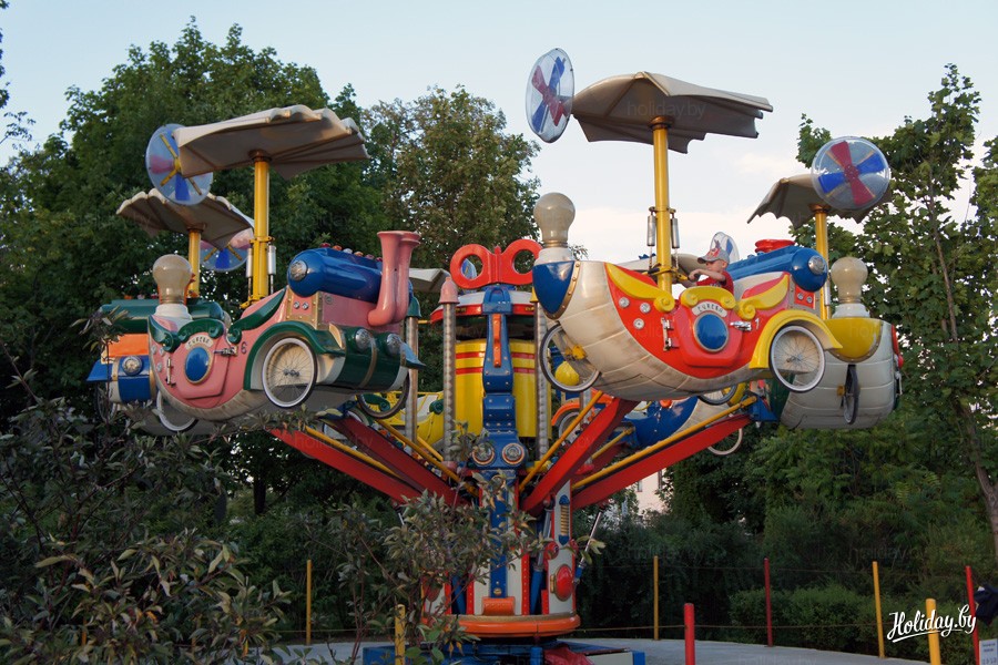 И наконец, аттракционы для самых маленьких: «Эврика» (карусели), «Конвой» (машинки), паровозик, детский городок, детские качалки (для деток до 5 лет) и всякие надувные конструкции. Уже только это делает детский отдых в этом парке аттракционов в Минске идеальным. А ведь на территории парка есть ещё и всякие ларёчки с игрушками и шариками (шарики, кстати, по 15 000 бел. рублей). Так что родителям придется раскошелиться.