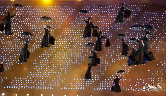 Во время церемонии на стадионе появлялись разные персонажи английских сказок. Любимая всеми детьми на Земле - Мэри в множественном числе;) (Reuters/Mike Blake)