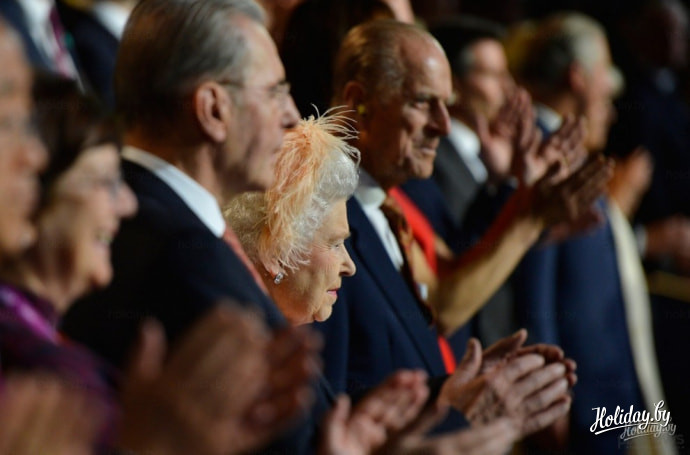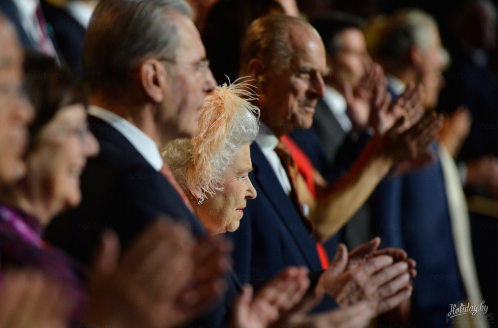 Елизавета II прибыла на церемонию в сопровождении супруга , герцога Эдинбургского Филиппа и президента Международного Олимпийского Комитета Жака Рогге (в центре слева) (Reuters/Toby Melville)