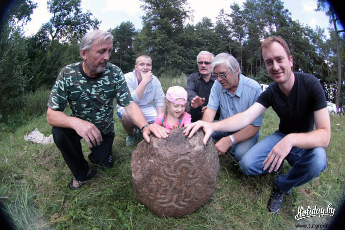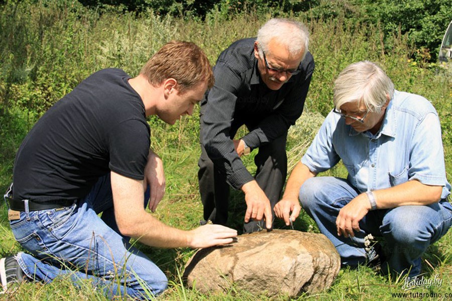 Во время исследований на тему истории авиации первых дней Великой Отечественной войны группа историков из Щучина обнаружила весьма необычный камень – он был обработан и на нём просматривался высеченный крест. Когда камень перевернули, то обнаружили изображения нескольких фигур с поднятыми руками.