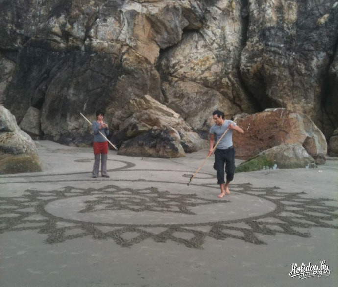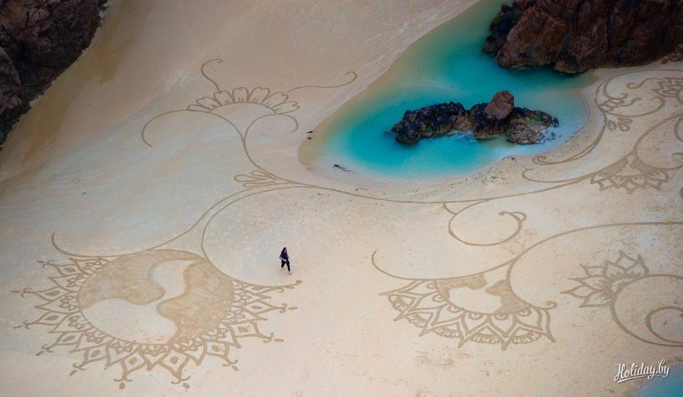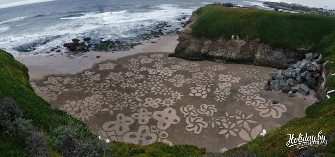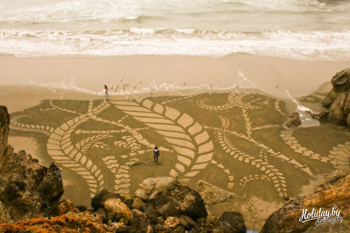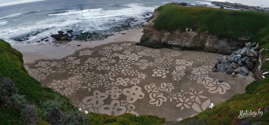 Инопланетянам, с их кругами на полях, есть с у кого поучиться:) Художник по песку Андреас Амадор из Лос-Анджелеса создает красоту песком на пляжах! Для этого ему нужно лишь включить воображение, взять грабли и пригласить волонтеров.
