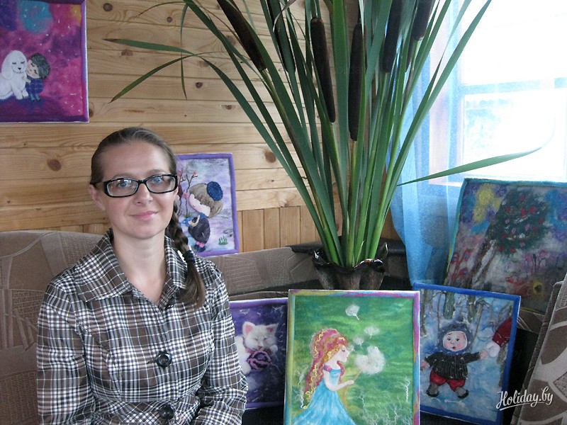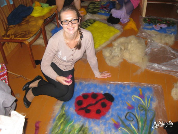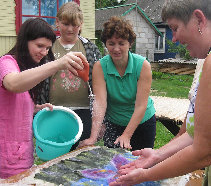 Владельцы туристических сельских усадеб Беларуси на летнике ремесел валяют картины из шерсти
