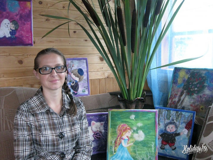 Юлия Герцева (сельская усадьба "Петуховщина") и её картина, сделанная на летнике ремесел