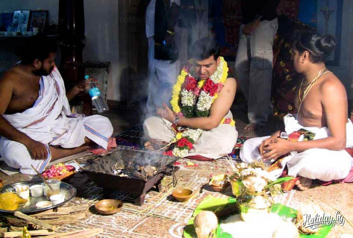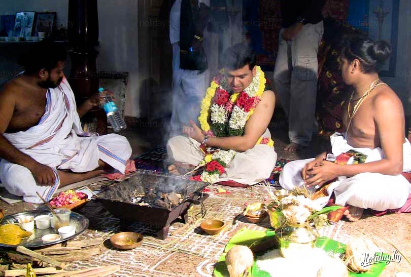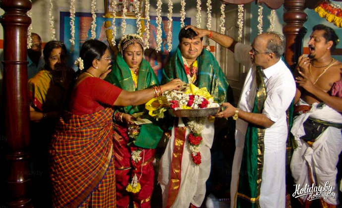 Мы были приглашены на свадьбу довольно образованной и успешной семьи. Жениха знали все лично, причем довольно давно. В Минске или в ОАЭ - это был представительный европейский мужчина средних лет, свободно владеющий английским, который обладает своей неповторимой мудростью. Здесь мы увидели всё того же знакомого и радостного Венката, но уже полностью поглощённого в тамильские традиции, начиная от костюма и заканчивая серьезным отношением к смешным, и где-то нелепым для нас, обрядам.