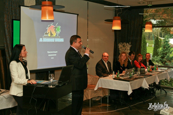 Президент компании Al Khalidiah Tourism делает презентацию туроператора и собственной отельной базы его компании