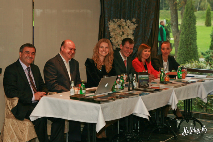 Презентация Palma Travel (слева - направо): Сирак Мурадян (Al Khalidiah Tourism), Игорь Чергинец (НАК "Белавиа"), Ольга Богатыревич ("Пальма трэвел"), Анатолий Богатыревич ("Пальма Трэвел"), партнеры и гости презентации