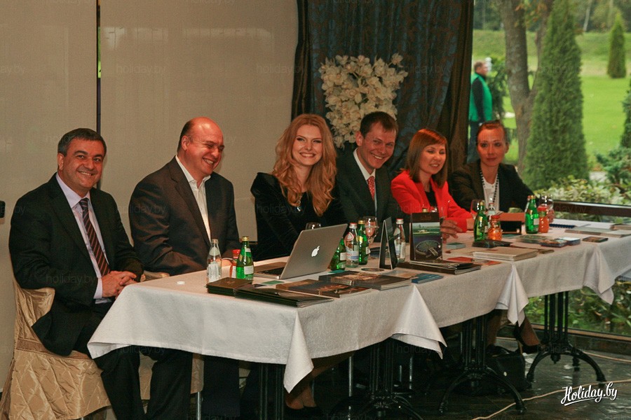 Определенной неожиданностью и изюминкой вечера стала новость о том, что соучредителем новой компании "Пальма Трэвел" стала известная белорусская телеведущая и модель Ольга Богатыревич. На фото: Сирак Мурадян (Al Khalidiah Tourism) официально представляет своего партнера в РБ.