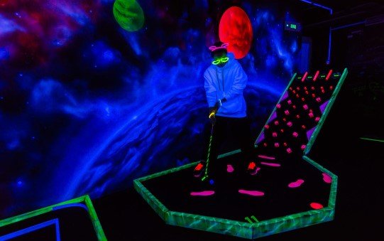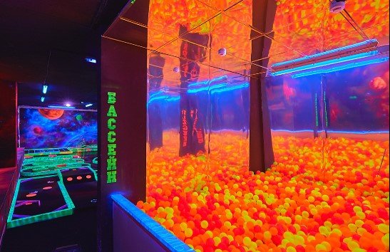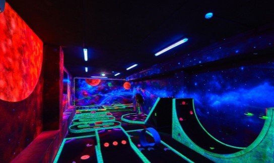 Все пространство комплекса подсвечено ультрафиолетом, что создает необычную атмосферу. В развлекательном центре имеется комната отдыха, где гости могут отдохнуть и отметить праздники.