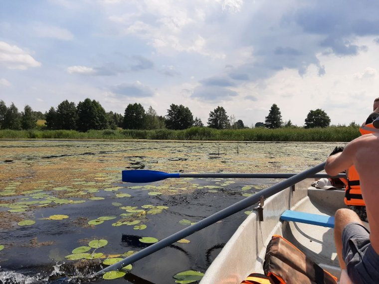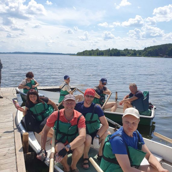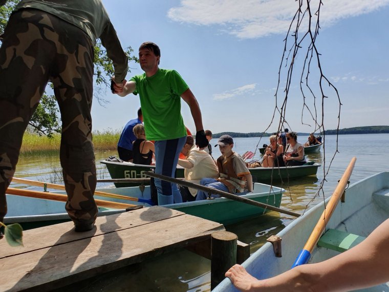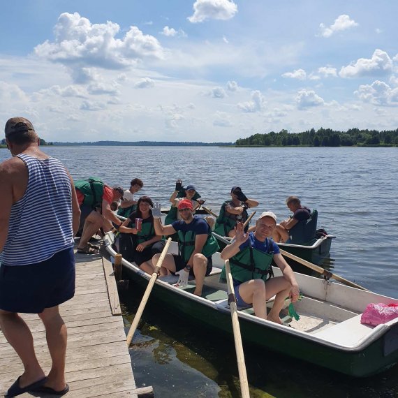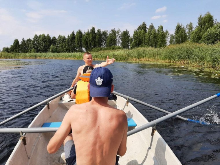 В водный поход могут отправиться 5-6 пластиковых 4-х весельных лодок «Пелла-Фиорд» на 4 места. В день маршрут занимает 4-5 часов (примерно 24 км). Продолжительность всего маршрута – 7-10 дней. В свободное время можно делать радиальные выходы, например, на остров Чайчин, где можно рыбачить, собирать грибы и ягоды. Также можно отправиться на экскурсии, например, в агрогородок Слободка или в деревню Видзы. Есть инструктор, повар, организатор мероприятий. Сам Владимир (хозяин усадьбы) – координатор.