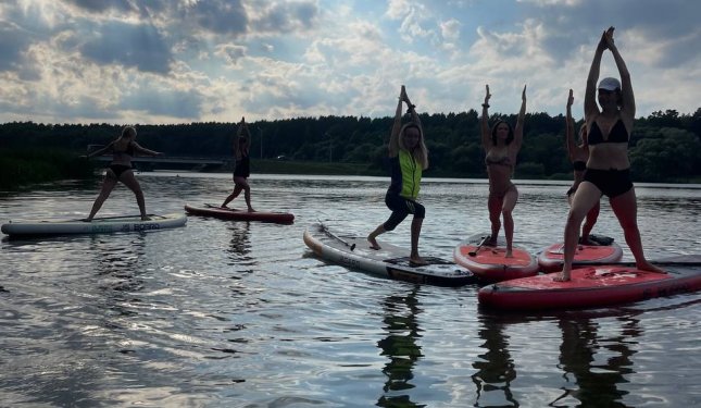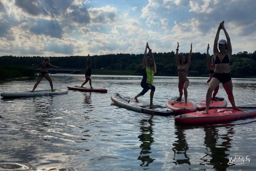 2. Катание на сап бордах на пляже "Друзья", водохранилище Дрозды (3 минуты от Минска). Режим работы: Будние дни 12:00 - до заката. Выходные дни: 11:00 - до заката. Предварительная запись не нужна.