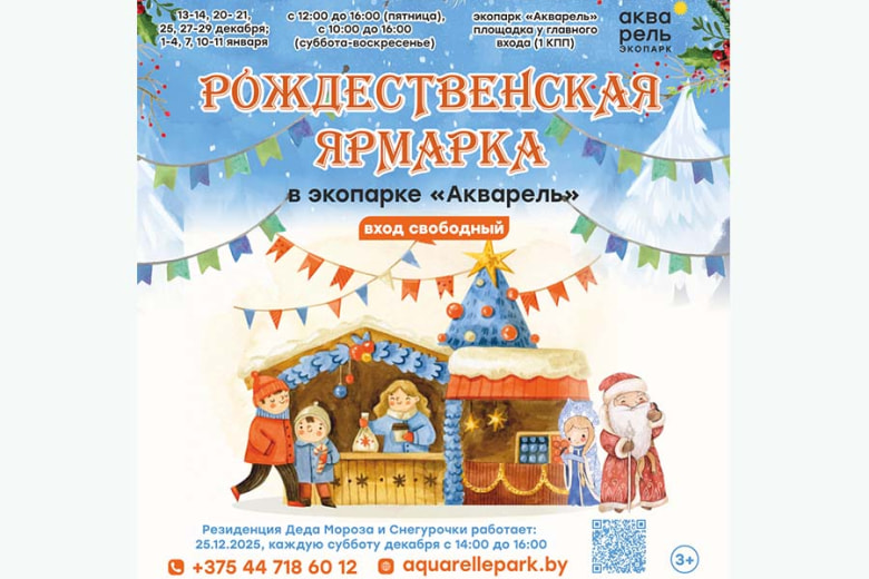 Экопарк «Акварель» подготовил множество сюрпризов для гостей рождественской ярмарки. Здесь можно будет приобрести новогодние игрушки и сувениры, живые ёлки, изделия местных художественных промыслов, ароматное имбирное печенье и другие десерты, хлеба и выпечку из кондитерского цеха, чай и сборы трав с фермерским мёдом, новогодние боксы со всем необходимым к новогоднему или рождественскому столу, фирменные соки, вкуснейшие консервации и много-много других полезностей и вкусностей.