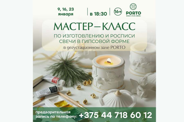 Приглашаем провести уютный вечер в компании единомышленников. В программе: увлекательный мастер-класс по изготовлению и росписи свечи в гипсовой форме, индивидуальный сет брускетт, welcome drink и просмотр кинофильма в приятной атмосфере.