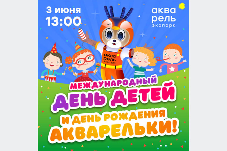Ведь так совпало, что наш главный герой экопарка Акварелька, родился именно в Международный день защиты детей. А мы решили объединить эти два события и пригласить всех детей и их родителей на большой праздник в экопарке «Акварель»!