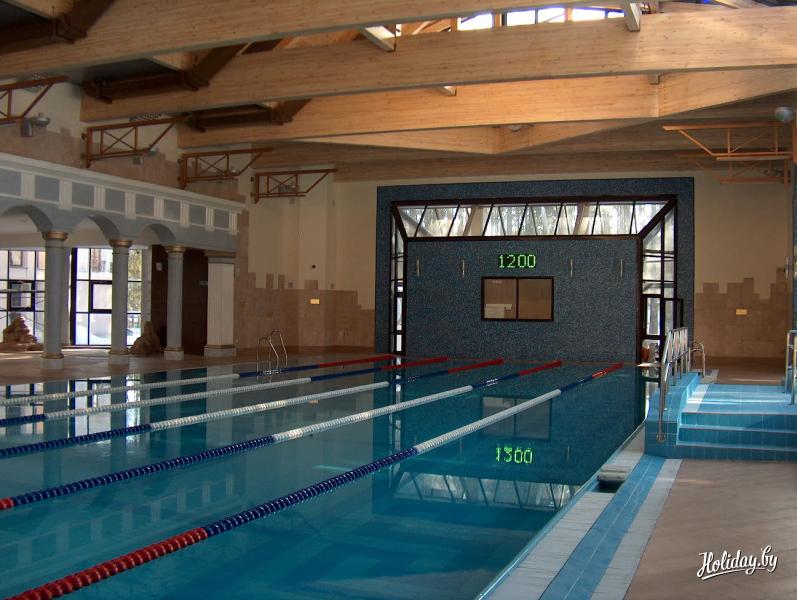 Аквапарк в санатории "Озерный" расположен в Гродненском районе. Преимущество аквапарка в минимальном количестве хлорки в воде. При этом очистка воды проводится дополнительно с помощью натуральной соли. Щадящая обработка воды позволяет достаточно долго находиться в воде даже детям.