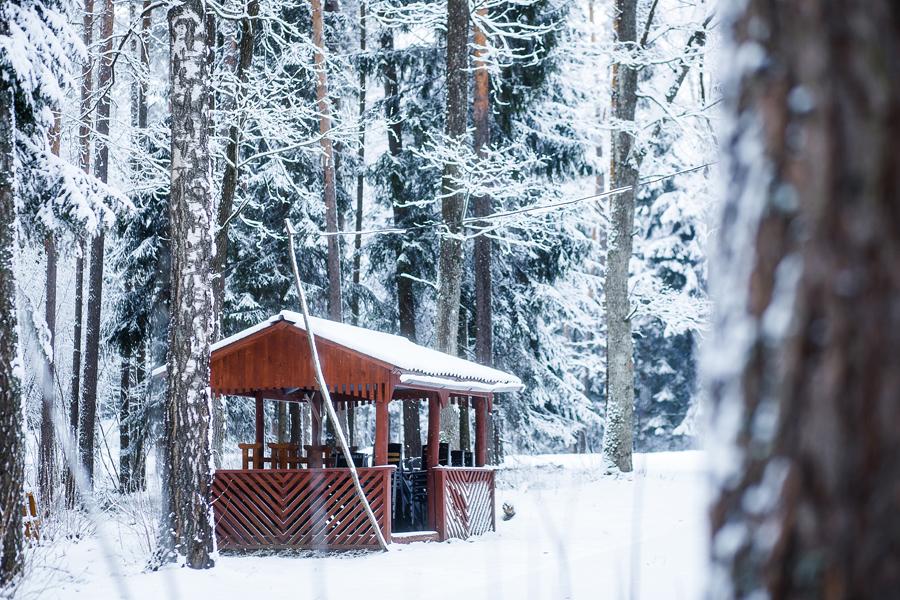 Беседка базе отдыха «Заячья поляна» в 40 км от Минска вмещает компанию до 12 человек. Она оборудована мангалом, предоставляются дрова. Также в ней дополнительно проведены розетки для подключения техники или зарядки мобильника. На территории туристического комплекса есть гостиница и гостевые дома для проживания, баня на дровах, искусственный пруд, лыжероллерные трассы, биатлонное стрельбище, парковка для автомобилей. Организация трансфера – по запросу.