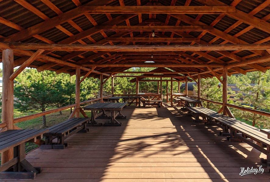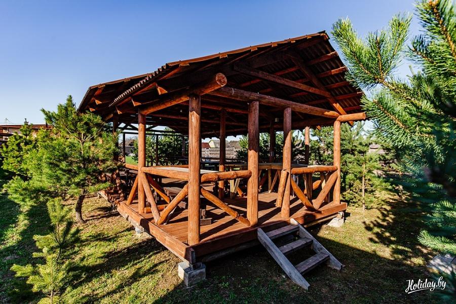Для проведения торжеств или встреч с друзьями предлагается беседка, расположенная на территории усадьбы «Молоди», в 39 км от Минска. Беседка рассчитана на 60 человек. Она находится посреди густой зелени, что создает приятную прохладу даже в самый жаркий день. Беседка за городом крытая, стены отсутствуют, так что гости смогут наслаждаться приятными ароматами сосен, которые растут прямо около беседки. Отдыхающим предлагается расположиться за большими столами, а праздничный ужин можно приготовить на мангалах, которые находятся недалеко. Аренда беседки за городом также включает сеанс бани, расположенной на территории усадьбы. Кроме того, при желании гости смогут переночевать или продлить отпуск в уютном доме усадьбы «Молоди».