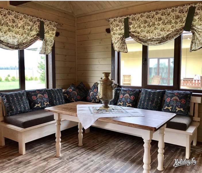 Праздники можно организовать в летнем доме-беседке. Здесь возможно провести мероприятие на 35 человек. В беседке имеется русская печь, в которой можно приготовить неповторимые блюда.