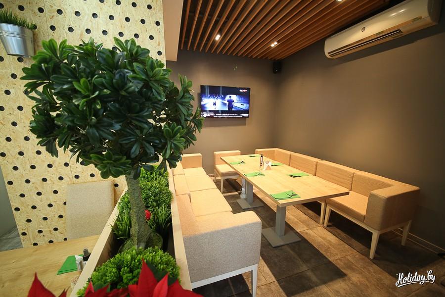 Интерьер «А-кафе» выполнен в современном стиле «эко-смарт». Здесь нет вычурных мотивов, искусственных материалов, ярких вкраплений. Здесь все сдержанно и достойно, материалы — натуральные, а атмосфера — настраивает на дружественный лад.