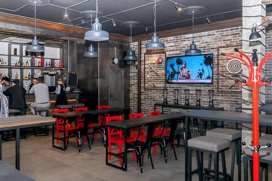 Заведение предлагает большой ассортимент напитков, европейскую кухню, разнообразные закуски, бизнес-ланчи.