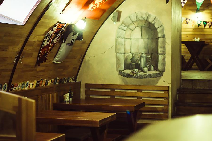 Эксклюзивная картина, изображающая пивной подвальчик, написана прямо на стене!