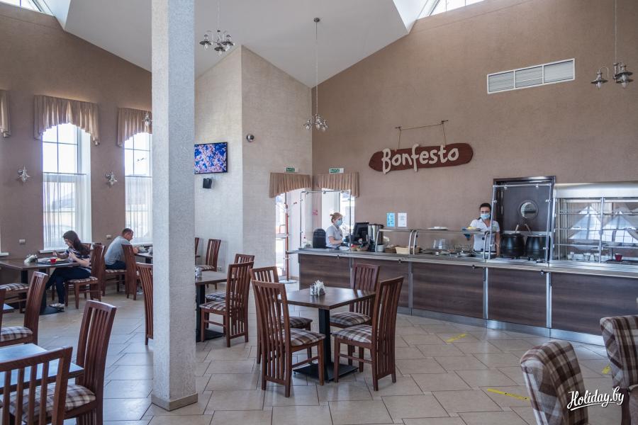 Рядом с кафе расположен фирменный магазин, где вы сможете приобрести свежую продукцию комбината.