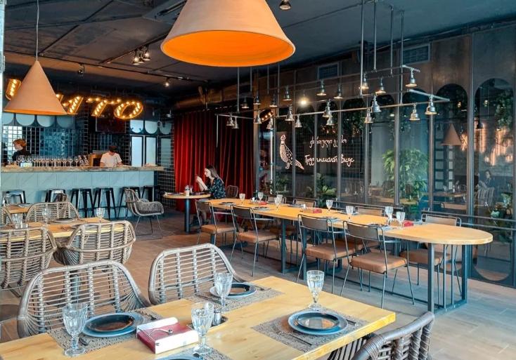 Интерьер кафе выполнен в стиле лофт с характерными грузинскими акцентами. В теплое время года в заведении открывается летняя терраса.
