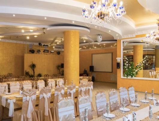 Каждый будний день в здесь можно заказать комплексный обед. Для проведения банкета или свадьбы есть разнообразное банкетное меню.