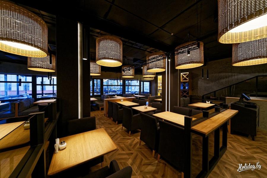В заведении имеется основной зал, бар, а также всесезонная терраса.