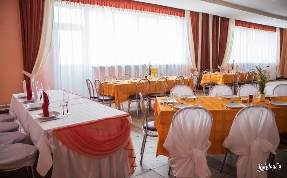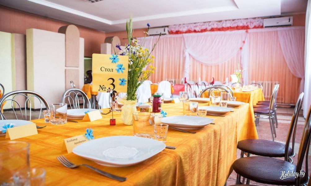 При проведении банкетных мероприятий вы получите следующие предложения: оформление зала, выездное обслуживание.