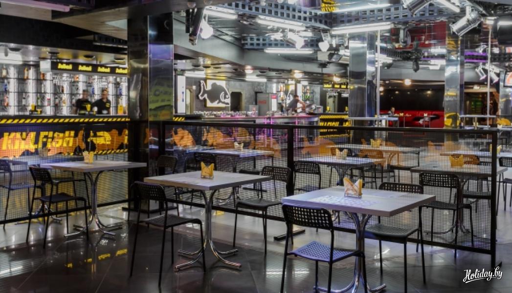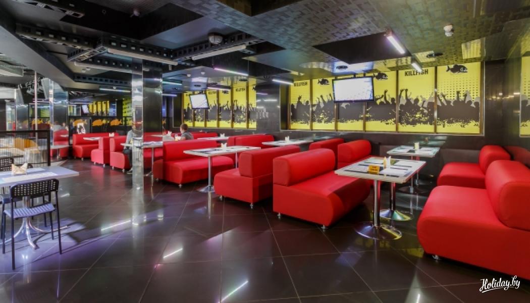 Кафе-бар KillFish (КиллФиш) расположен в здании центра Титан на проспекте Дзержинского. В заведении представлено меню с блюдами европейской, американской и белорусской кухни. Здесь готовят бургеры с беконом, картофелем айдахо и халапеньо, фаршированные драники, шашлык. В коктейльной карте представлено 77 позиций, как традиционных, так и авторских. Здесь имеется пивоварня, где готовят различные пивные напитки.