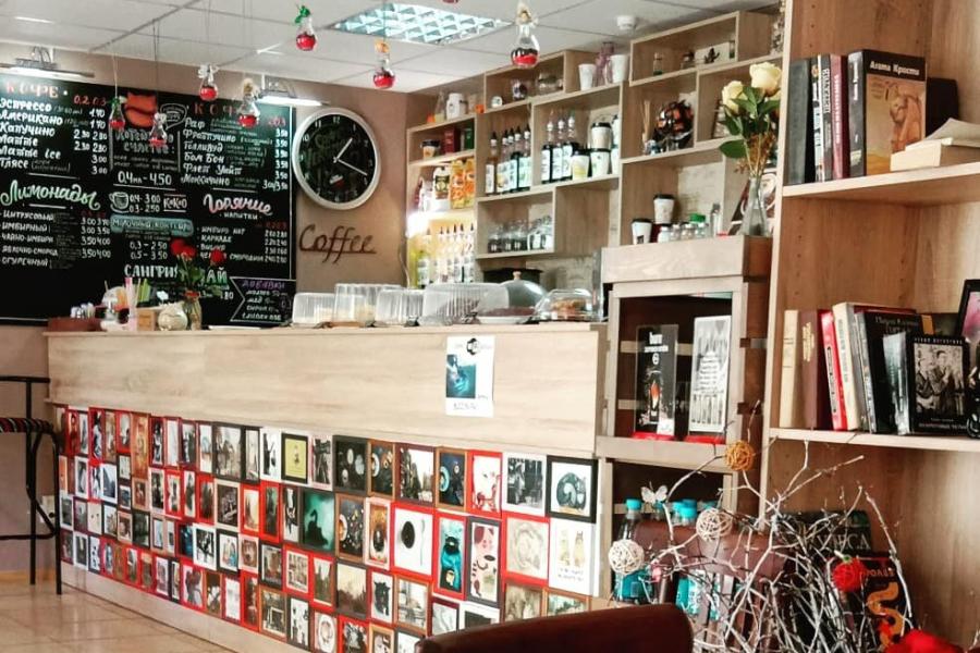 На полках в кофейне стоят книги: работает буккроссинг. Каждый гость может взять почитать книгу и принести свою взамен.
