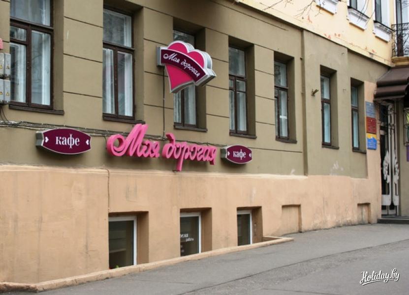 Кафе "Моя дорогая" расположено в центре Минска. Здесь имеется два зала: для курящих и некурящих гостей. Для пар есть специальные уединенные места.
