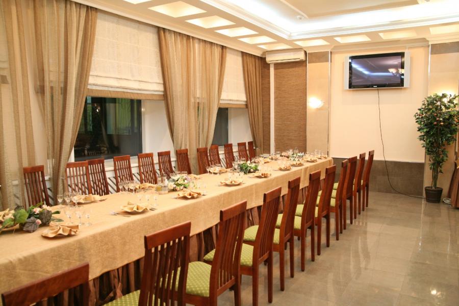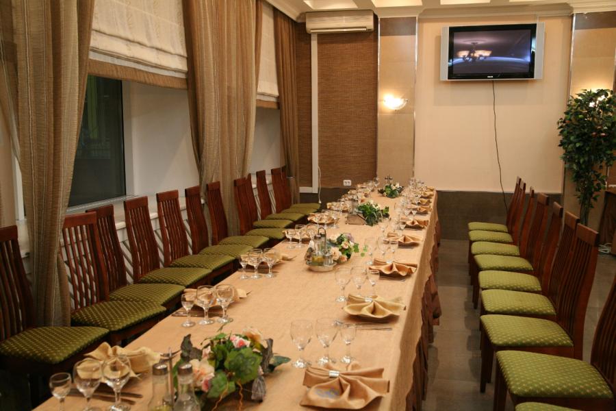 Уютная атмосфера Банкетного зала расслабляет и придаёт любому празднику романтическое настроение. Это помещение идеально подойдёт вам, чтобы отметить день рождения, юбилей, или любую другую торжественную дату в кругу самых близких людей и друзей. Помещение рассчитано на 25 человек, имеет приятный интерьер с большими зеркалами, мягким освещением, большим плазменным телевизором и музыкальным центром.