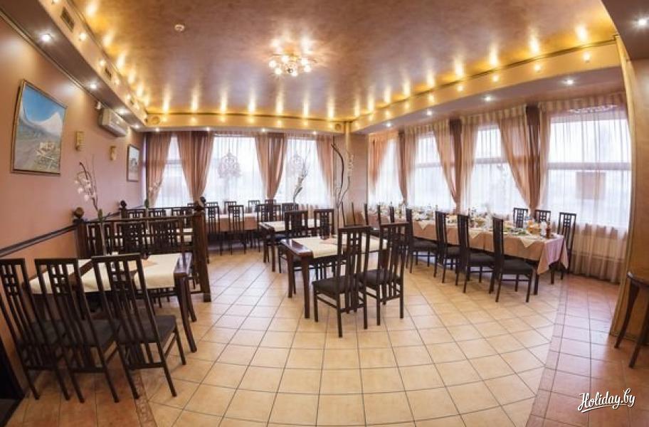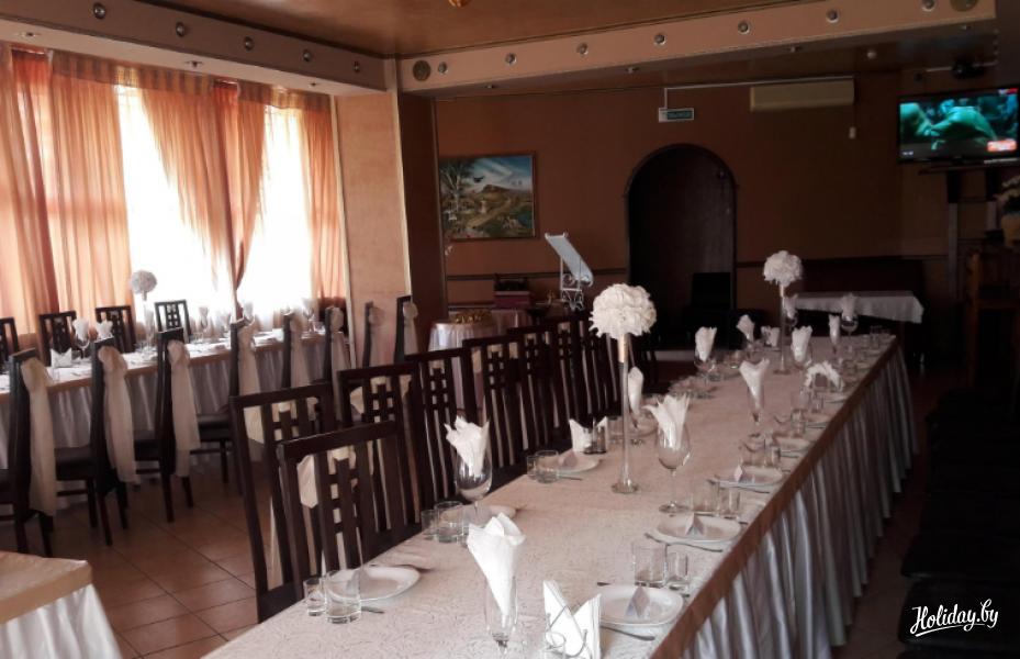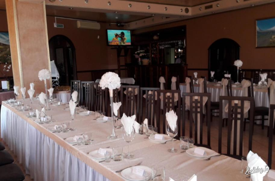 Меню кафе сочетает в себе блюда белорусской, европейской и армянской кухни. К блюдам подают знаменитые коньяки Арарат, Ной, Ахтамар. Фирменные блюда кафе - шашлык из свинины, телятины, куриного филе, кебаб, семга и форель на углях.