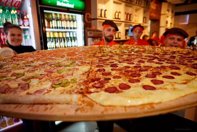 Пиццерия предлагает широкий ассортимент и быструю доставку. Помимо пицц (стандартные пиццы, с двойным дном, пицца-пирог) в меню также представлены суши, томмистеры, бургеры, напитки и десерты.