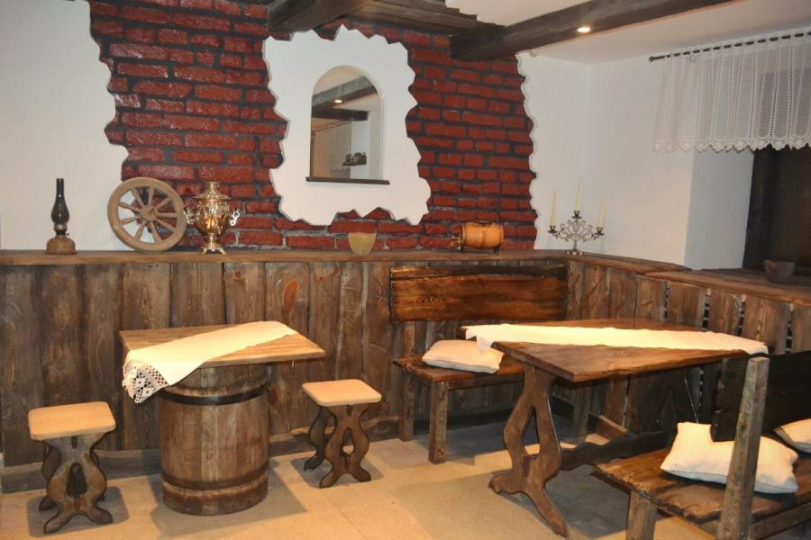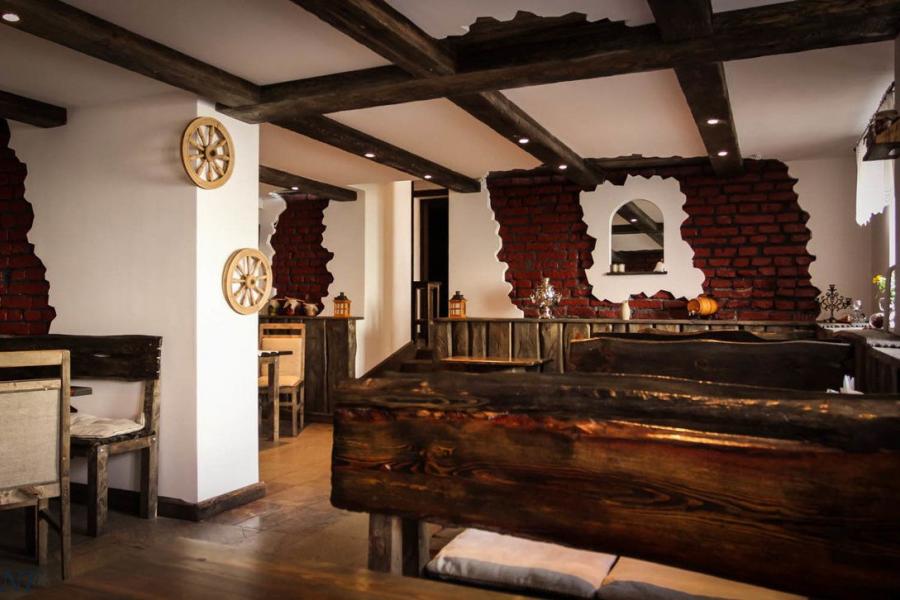 Интерьер заведения соответствует кухне - в оформлении использованы предметы быта, который встречались в домах белорусов в XIX-XX вв. Атмосферу поддерживает фоновая этномузыка.