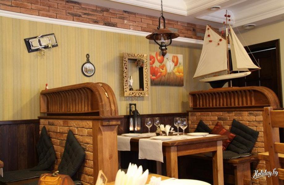 Меню кафе основано на блюдах европейской и белорусской кухни с авторскими доработками. В приготовлении используются продукты высокого качества. Имеется обеденное меню.