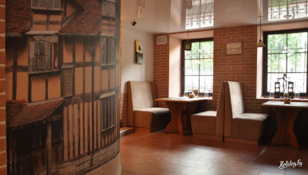 В заведении готовят блюда британской и белорусской кухни с авторскими интерпретациями. В обеденное время действует меню ланчей.