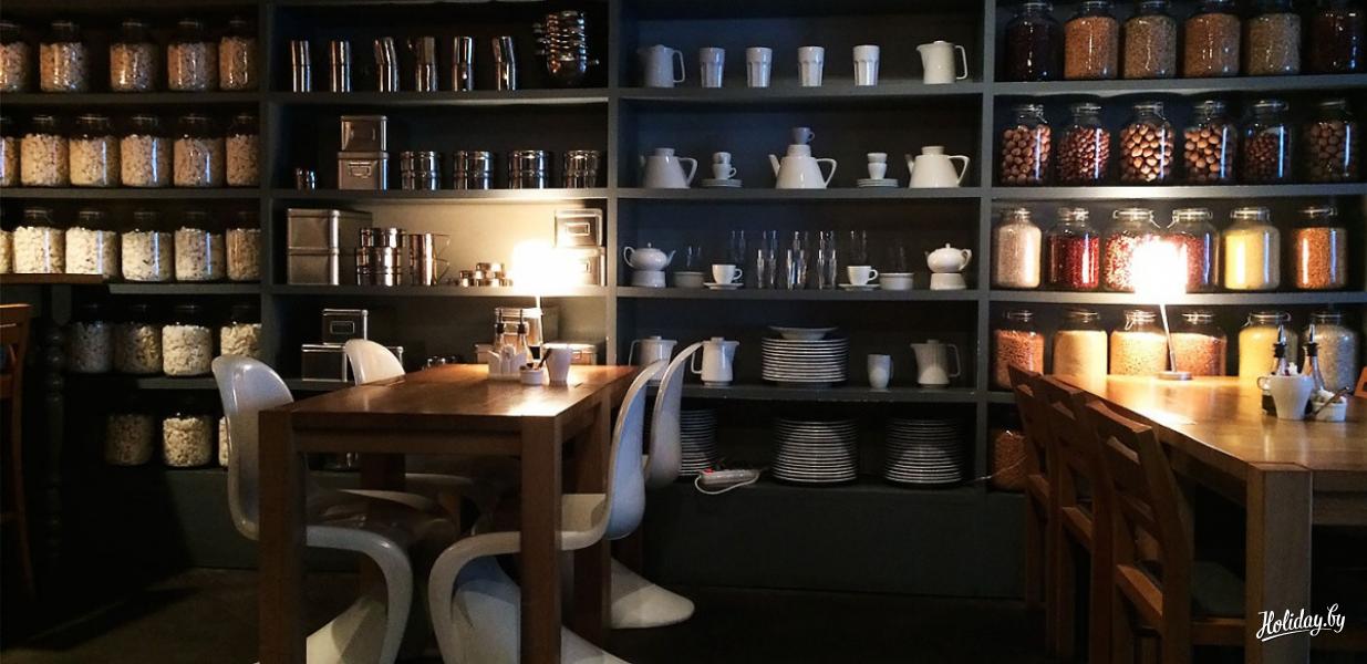 В кафе предлагаются блюда европейской кухни. Действует меню завтраков с сырниками, яичницей и кашей. Также в заведении предлагается меню комплексных обедов. Имеется десертная, кофейная, чайная карта. В кафе представлена свежая выпечка. Для маленьких гостей разработано детское меню.