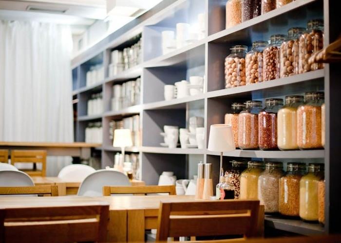 Кафе "Справа" это место с вкусной едой, доступными ценами и отличным обслуживанием. Интерьер выполнен в светлых тонах с деревянной мебелью и интересными акцентами в виде банок и черно-белых фото.