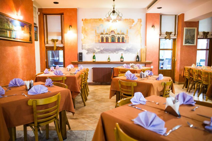 В "Венеции" выпекают пиццу в традиционной печи на дровах, прямо у посетителей на глазах, соблюдая все итальянские традиции и рецептуры. Помимо пиццы в меню: карпаччо из говядины, изумительные пасты и ризотто, традиционные итальянские десерты.