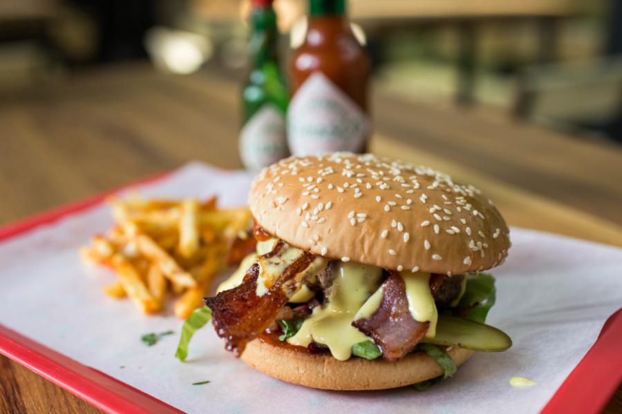 Меню разнообразное и представлено горячими и холодными закусками, супами, сэндвичами, бургерами, салатами. Блюда подаются в одноразовой эко-посуде. Для блюд, которые едят руками, предлагают перчатки.