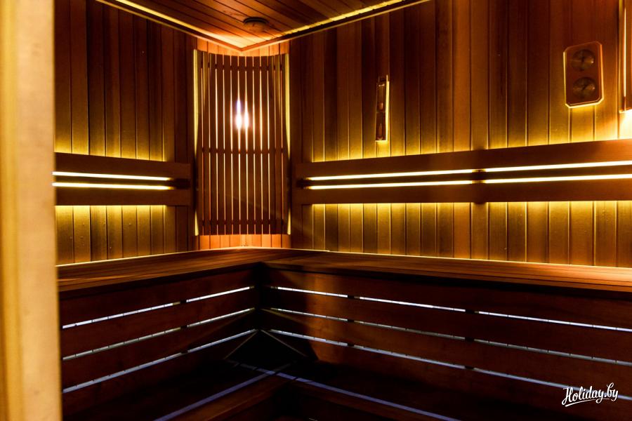 Все вышеперечисленное, конечно, можно найти в разных коттеджах, а вот некоторые черты выгодно выделяют «Блонь» среди прочих. Во-первых, внутри коттеджа баня из настоящей древесины - ароматного канадского кедра, целебные свойства которого известны по всему миру. Дровяная печь «Князь Калита», которая установлена внутри, отвечает мировым стандартам. Облицовка из минерала талькохлорита, камня с очень высокой теплоемкостью (в два с половиной раза выше, чем у печного кирпича) и термической устойчивостью, чистотой и экологичностью. В бане устроены три тропических душа разной температуры. Тут же рядом танцпол с цветомузыкой, проектором, пультом для ведущего, колонками.